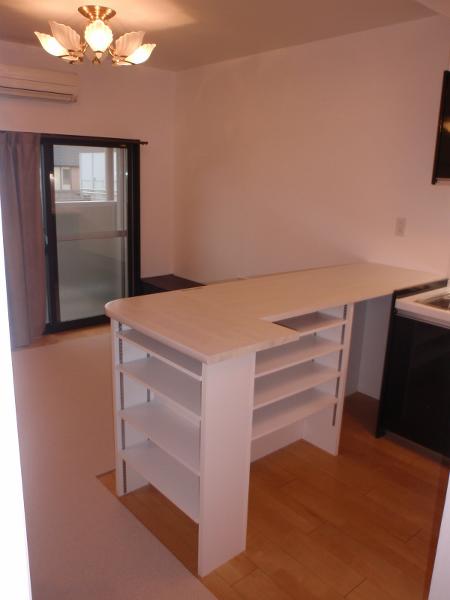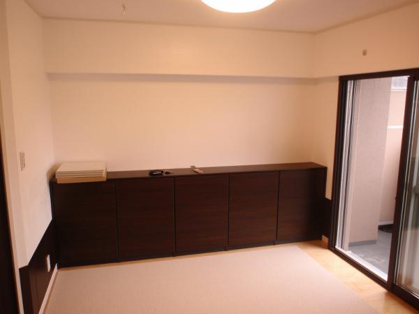 【施工後】リビングの様子です。収納棚を取り付けました。