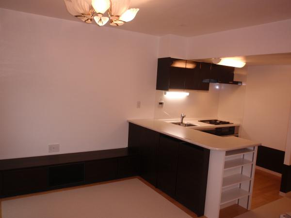 間仕切壁を撤去して空間を広げました。お客様の強いご要望で、内装工事には、健康志向にこだわりオールシックイ塗りで施工いたしました。リビングにはテレビカウンター、キッチンには収納カウンター、洋室にはクローゼットを設置いたしました。収納力がアップし、お部屋全体もスッキリ、そして広く感じられるようになりました。