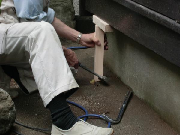 築30年で木製サッシの重みで下がった敷居を補強いたしました。軽くて丈夫なアルミ雨戸を入れて今まで重くて、動きの悪かった雨戸の悩みを解消!
