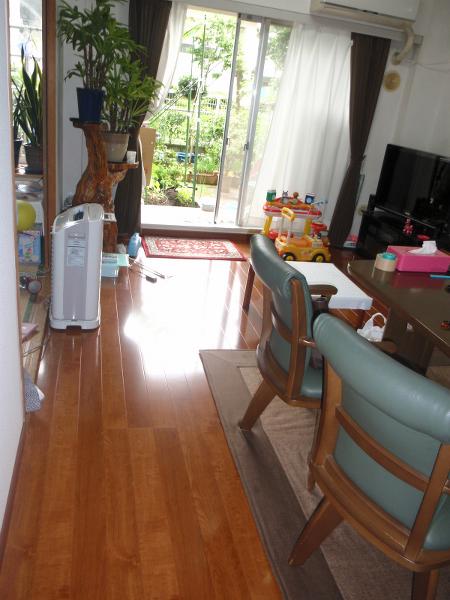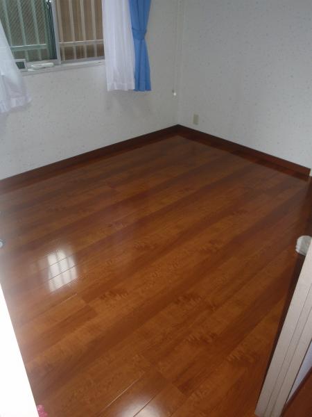 1Fの床は、高級光沢銘木フローリングに張替し、ワックスがけが不要でお掃除も楽になりました。