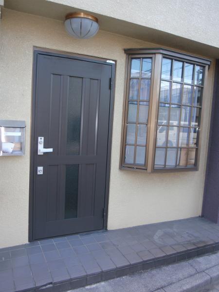 店舗となっているお宅の入り口ドアがガラスドアになっており、防犯面で危険でしたので枠を取り付け、ドア自体も交換いたしました。