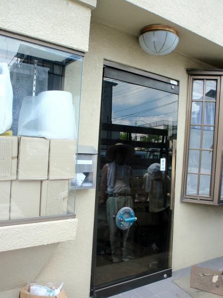 以前は洋品店の透明ガラスで内部がまる見えでしたので、事務所にする為、防犯を兼ねて交換しました。