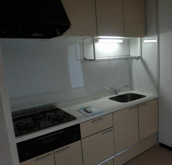 【施工後】やさしい色合いのキッチンで、お部屋全体が落ち着いた台所になりました。