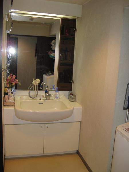 【施工前 洗面台】古いデザインで、どこか使いにくく、収納もあまりできませんでした。