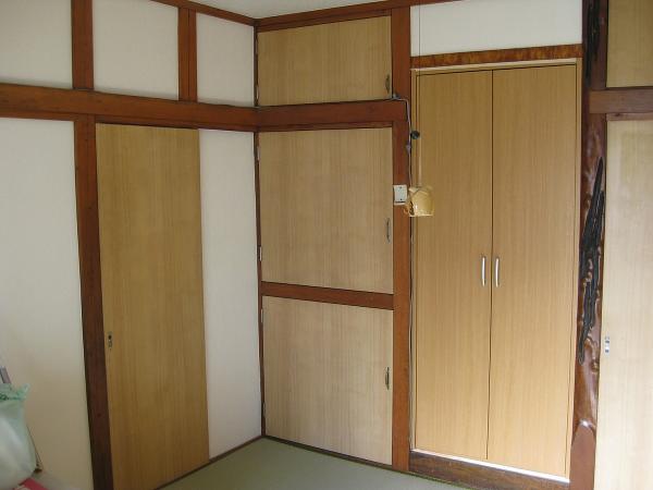 繊維壁の上に薄いベニヤを貼り、クロスを貼りました。