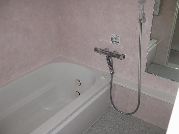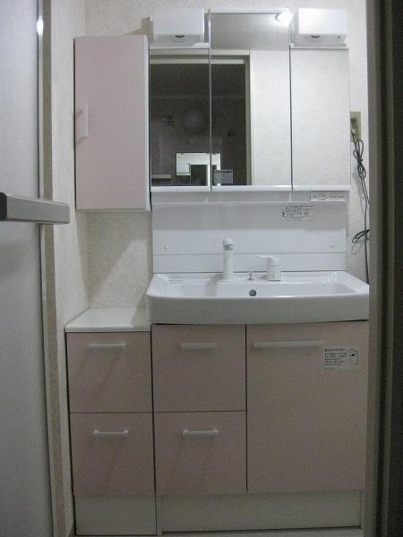 洗面台、バスともにピンクで明るく、優しい雰囲気になりました。